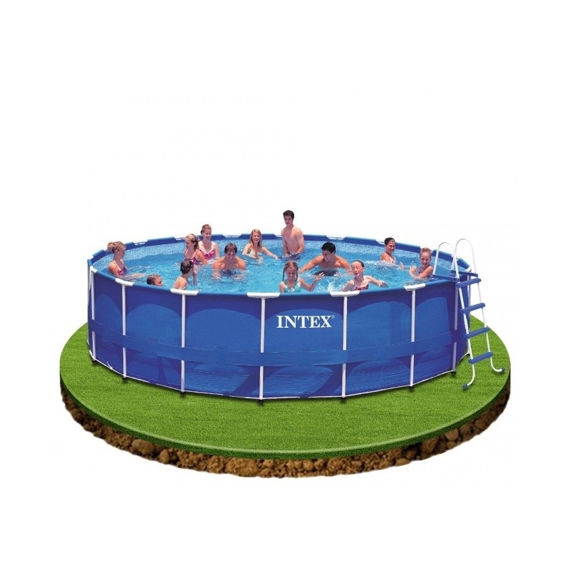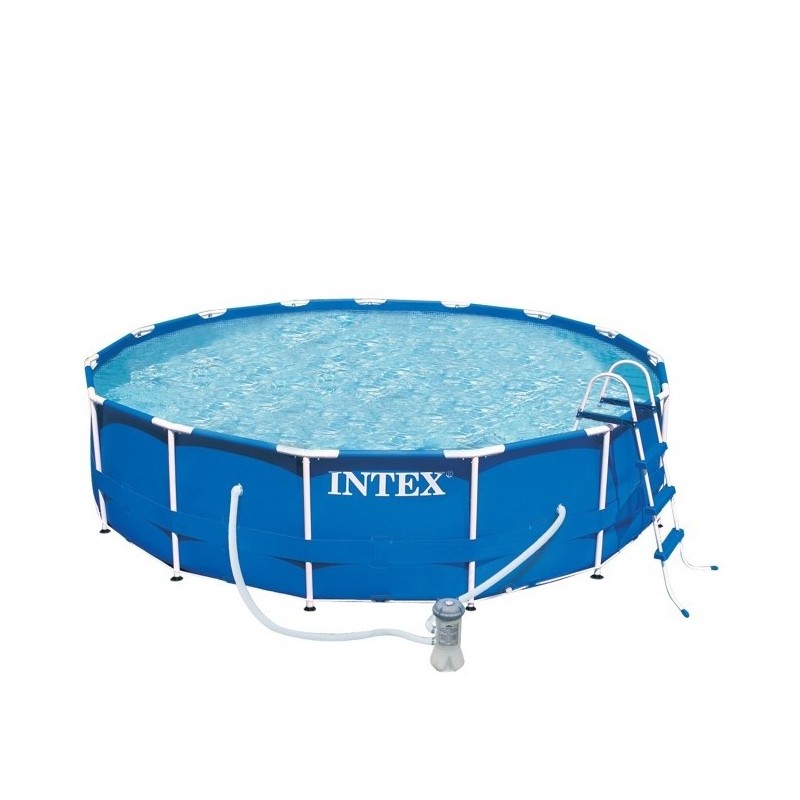 Frame pool (MERK INTEX) zwembad zeer sterk en eenvoudig op te zetten het zwembad word opgezet door het sterke gegalvaniseerde buizenframe in elkaar te zetten en daar de extra versterkte pvc folie in te plaatsen.